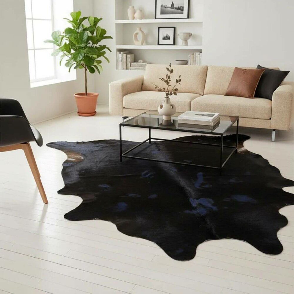 Las alfombras de cuero vacuno con diseño Splash en colores azul y negro, en tamaño Large, son piezas de arte únicas que aportan un toque de modernidad y sofisticación a cualquier espacio. Cada pieza es única, con un diseño vibrante que combina la serenidad del azul con la elegancia del negro.