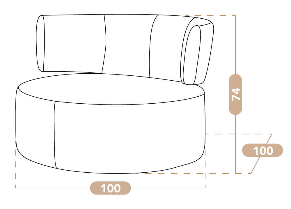 Su amplio respaldo envolvente brinda una experiencia de descanso única, ideal para leer, relajarse o disfrutar de una película. Su diseño circular y minimalista lo convierte en una pieza protagonista que se adapta a distintos estilos de decoración.